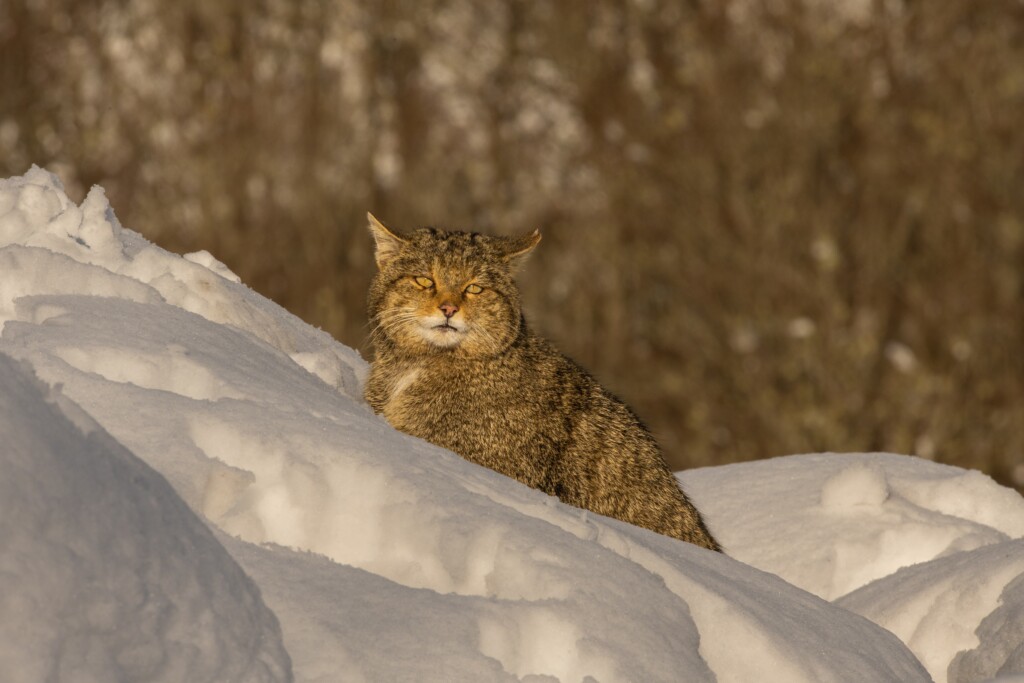 Jednak nasze rumiane od mrozu twarze i świecące oczy znamionują sukces: zobaczyliśmy nie tylko orła przedniego, mocarza przestworzy, który w Polsce nie ma sobie równych (idąc na solo, pokonuje nawet bielika); zobaczyliśmy też żbika, najtrudniejszego do sfotografowania kota Europy. Ten jeden z protoplastów kota domowego może się z nim krzyżować – podobno w naszym kraju, nie dość, że skrajnie rzadki, to nie występuje już w postaci czystego genetycznie dzikusa. Kiedy pytam o ewentualną hybrydyzację, Mario, prawdziwy mężczyzna gór (kocie ruchy i gibkość nie kłamią – w wolnym czasie wspina się na skałkach w Pirenejach), spogląda na mnie z wyrzutem i politowaniem. Niemal go obraziłem. – Hybrydy spotyka się, owszem, u was, w Europie Środkowowschodniej. Tu masz pewność, że to stuprocentowy „wild cat” – zamyka dyskusję.