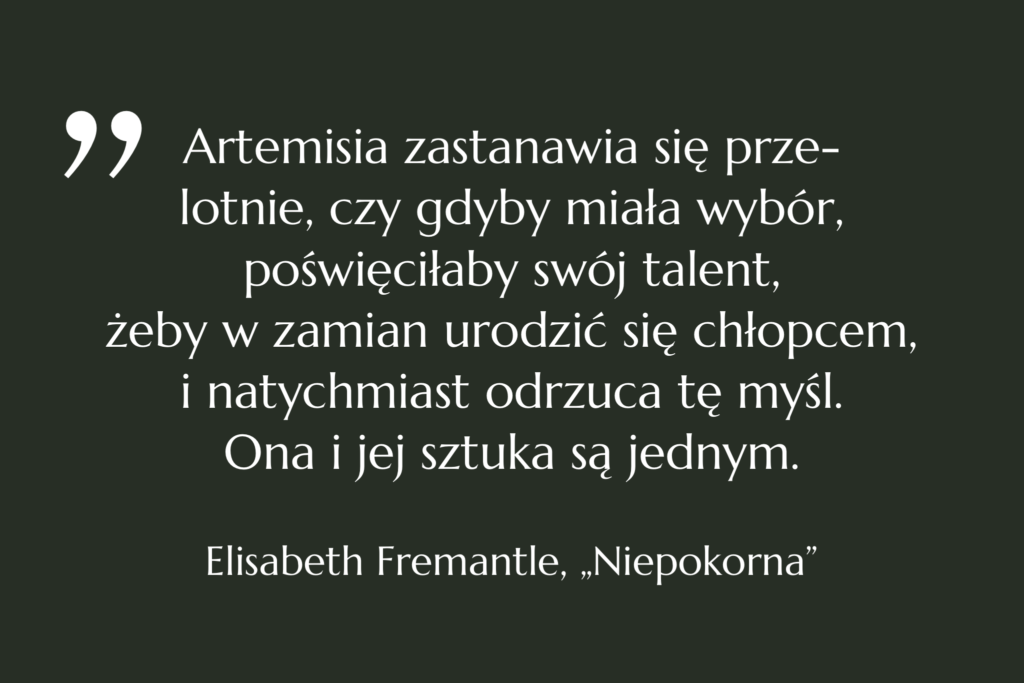 Angielska pisarka Elizabeth Fremantle prowadzi czytelnika przez kluczowe etapy życia Artemisii Gentileschi: od nauki w pracowni ojca, przez doświadczenie przemocy i upokarzający proces sądowy, po moment odzyskiwania sprawczości poprzez sztukę. Rzymska artystka ukazana zostaje jako postać funkcjonująca w świecie, który nie daje kobietom możliwości samostanowienia; jest przy tym w pełni świadoma własnego talentu, a z czasem odkrywa także drzemiącą w niej siłę ducha. Jak na autorke bestsellerowych powieści historycznych przystało, także w przypadku Niepokornej Fremantle nie proponuje nam klasycznej biografii, lecz literacką rekonstrukcję przeżyć kształtujących bohaterkę, dla której twórczość staje się formą oporu i nadzieją na przetrwanie.