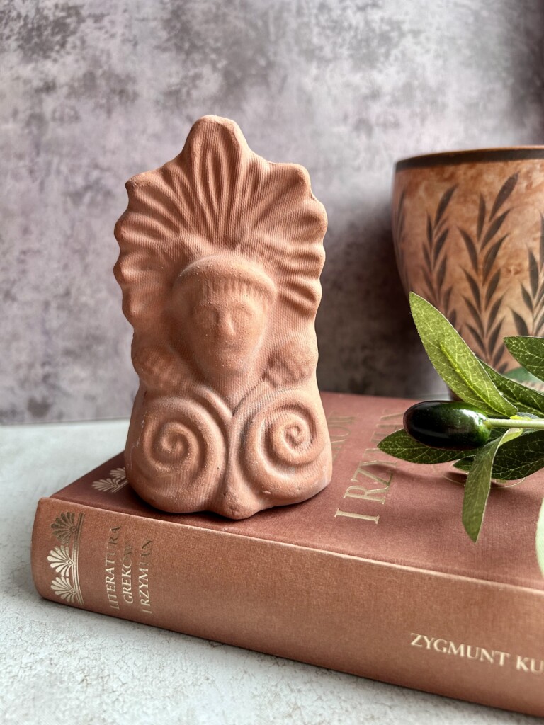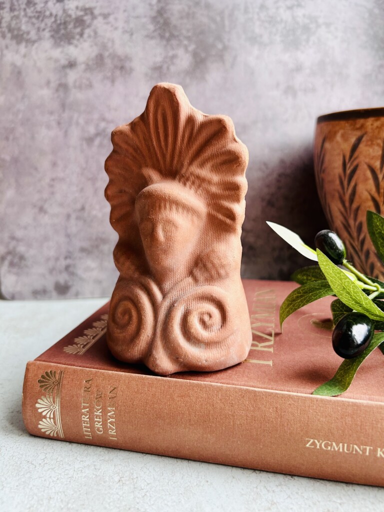 Naturalna, lekko porowata terakota nadaje przedmiotowi autentyczny, rustykalny charakter, dzięki czemu akrokeramo doskonale sprawdzi się jako elegancka dekoracja wnętrza, pamiątka kulturowa lub symboliczny prezent dla miłośników historii, sztuki i kultury śródziemnomorskiej.