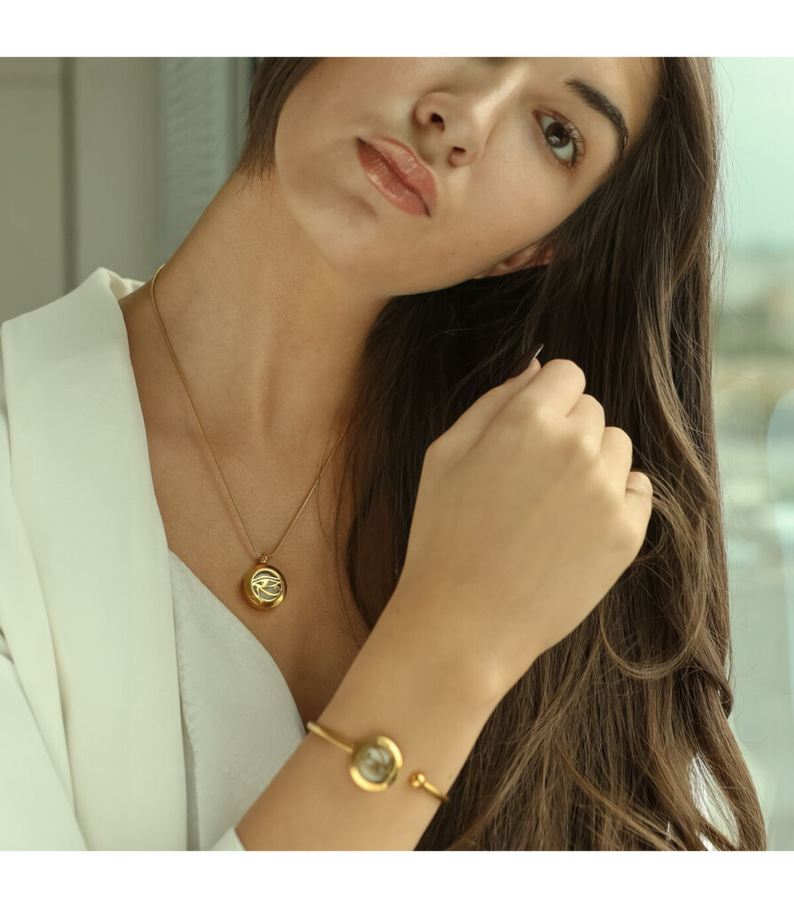 Oko Horusa, zwane także „Okiem Uadżet” lub „okiem księżycowym”) to staroegipski symbol odrodzenia i powrotu do zdrowia. Uważa się je także za symbol chroniący oraz znak wszechwiedzy, pomagający tym, którzy czuli się przytłoczeni swoim życiem i potrzebowali nowego wglądu, pełnego inspiracji i wiary. Uważano, że dzięki oku można odnaleźć szczęście – takie, które nie jest darem z nieba, lecz spoczywa w naszym wnętrzu. Mistyczne starożytne teksty sławiły oczy Horusa jako lustro odbijające naszą prawdziwą naturę.